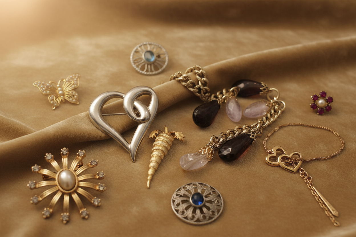 Discover our curated collection of authentic vintage jewelry. From elegant brooches and...