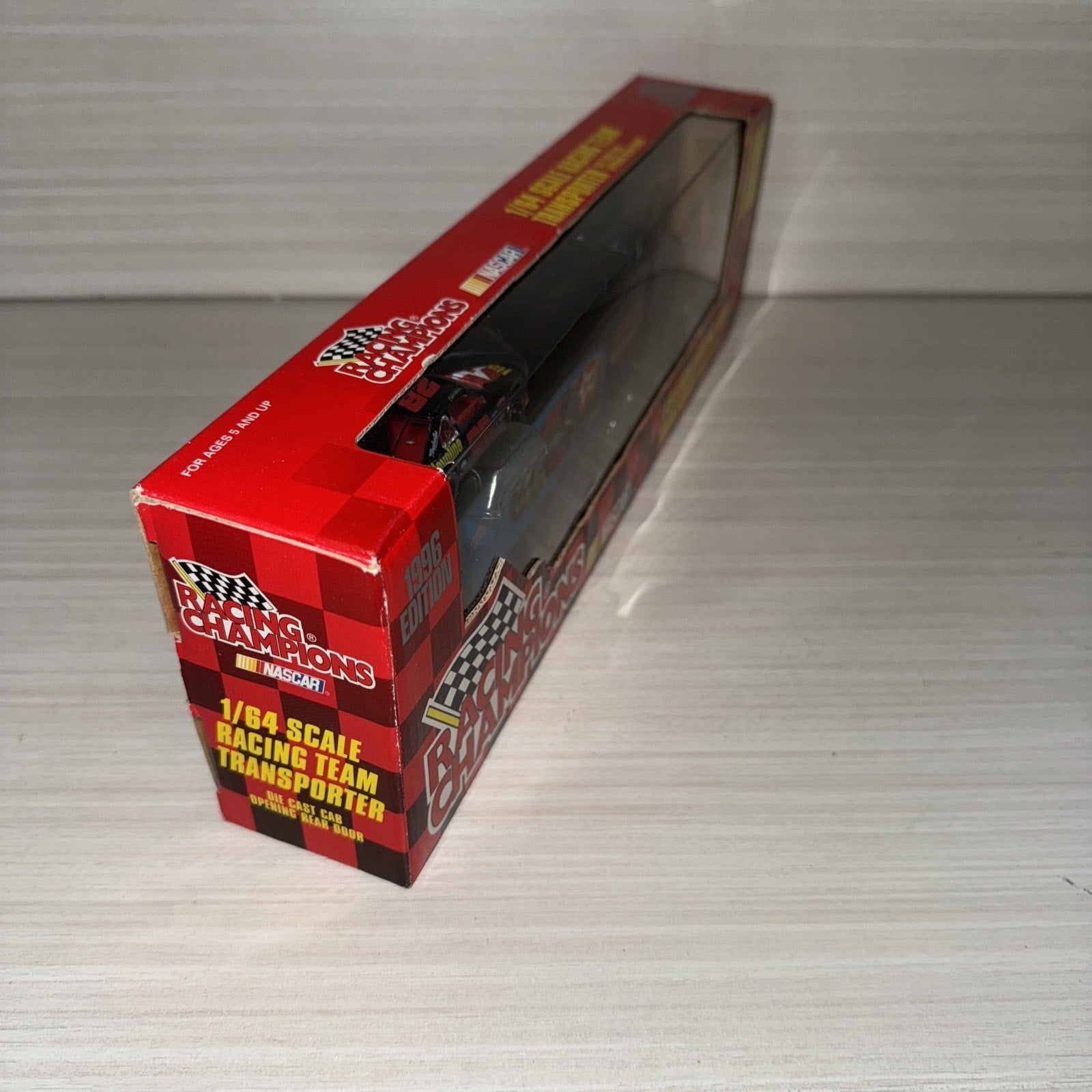 This 1996 Racing Champions 1:64 scale transporter features Ernie Irvan’s #28 Texaco Havoline Ford semi truck. The diecast model is new in box and showcases detailed graphics and authentic NASCAR styling from the mid-'90s. A standout piece for fans of Ernie Irvan and vintage NASCAR memorabilia, this limited edition transporter is ideal for display or collection.