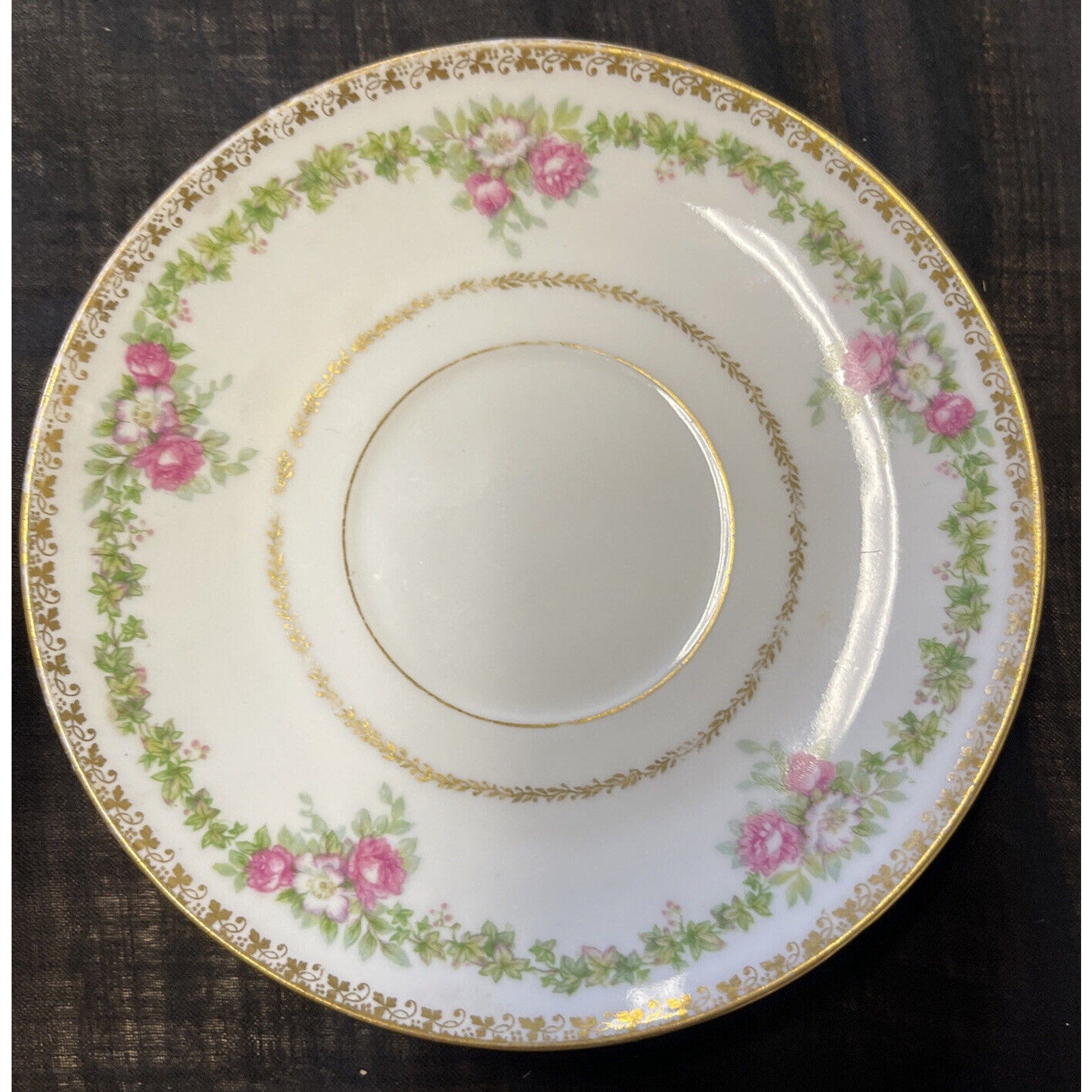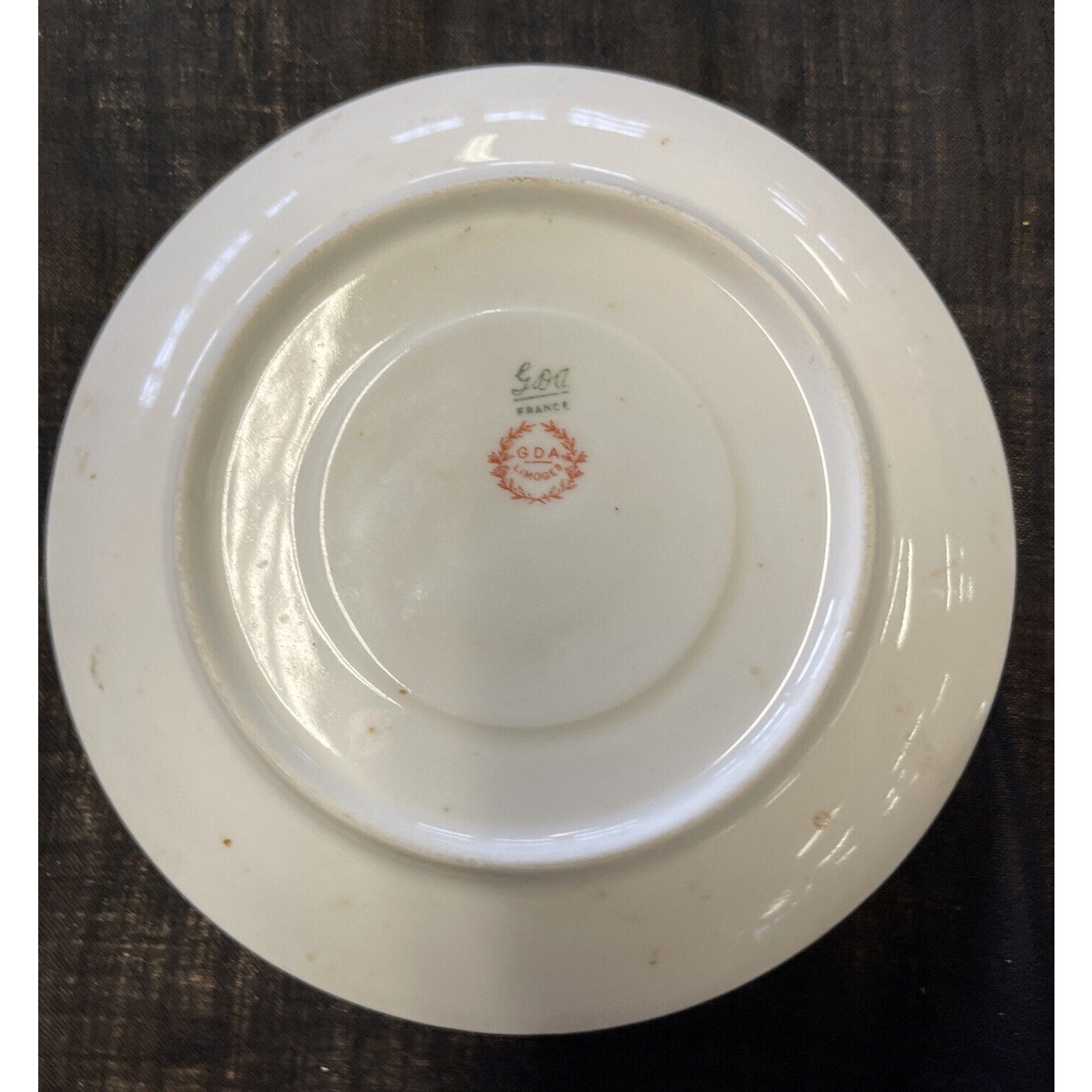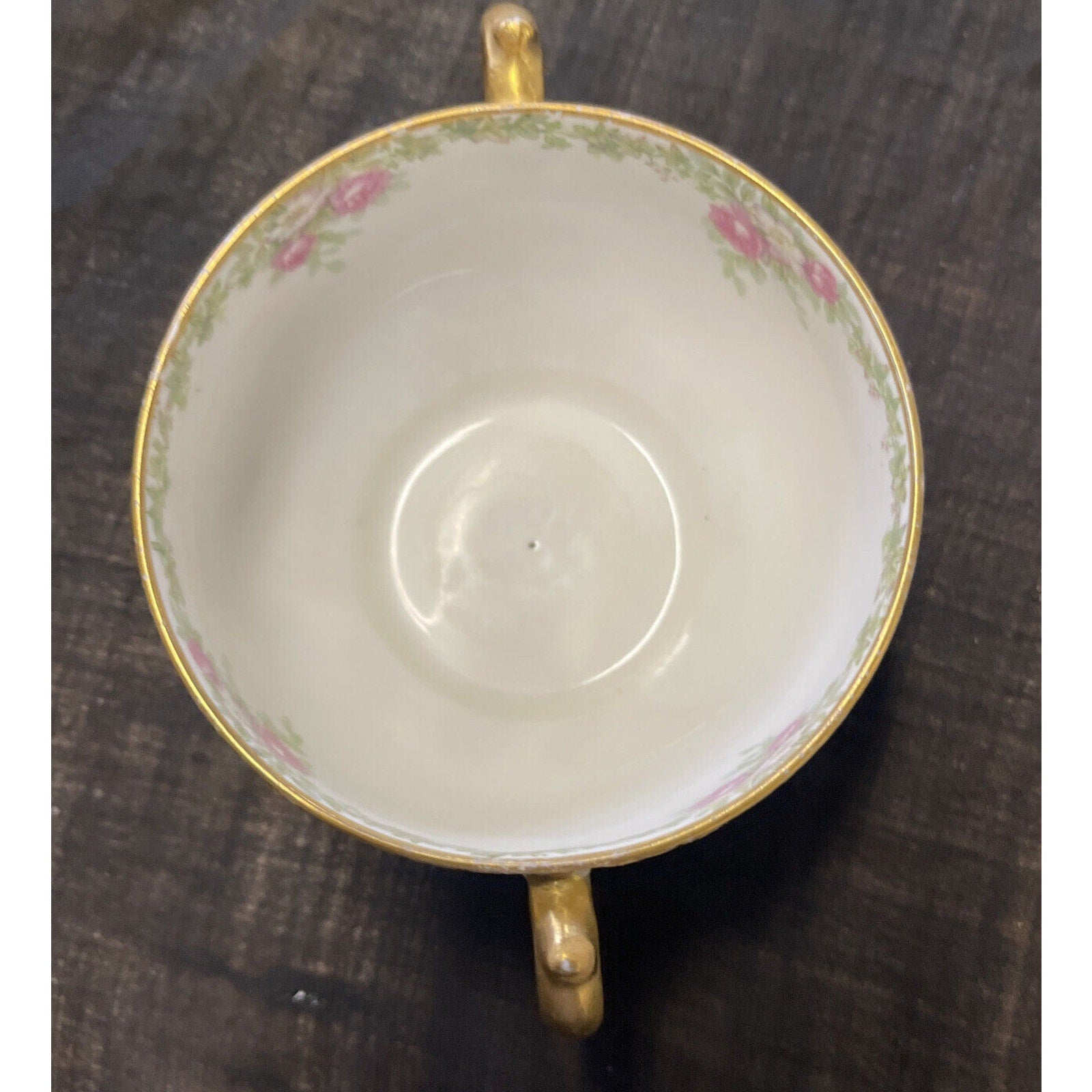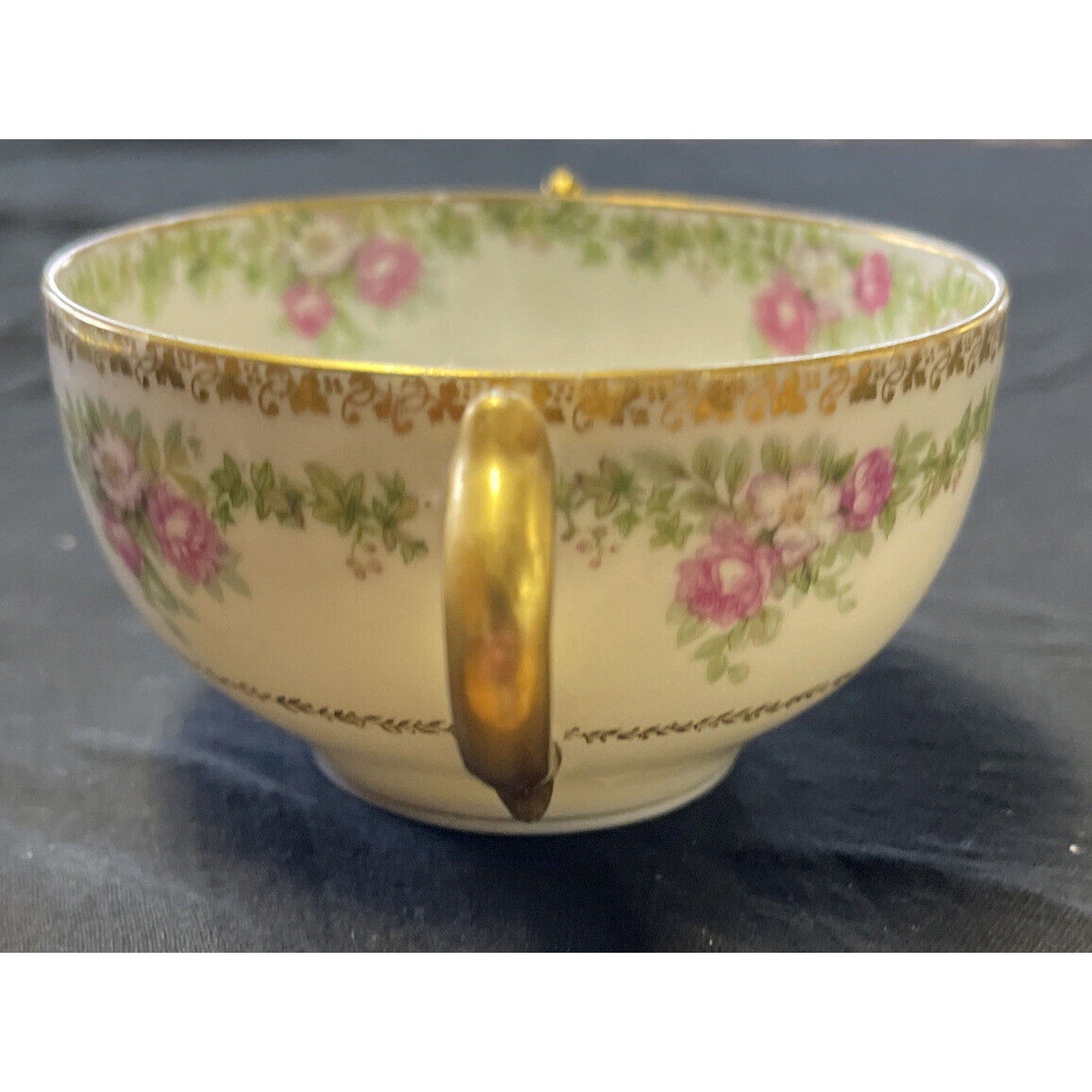 GDA Limoges Gilded w/ Ivy/Rose Pattern Cream Soup or Bullion Cup & Saucer