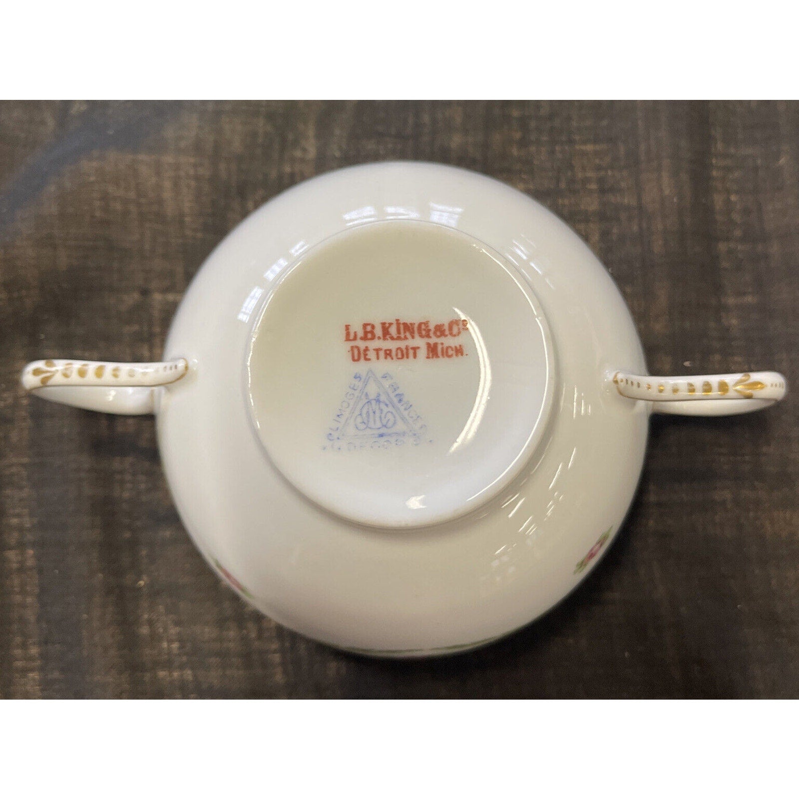 L.B King Gilded with Ivy/Rose Pattern Cream Soup or Bullion Cup & Saucer