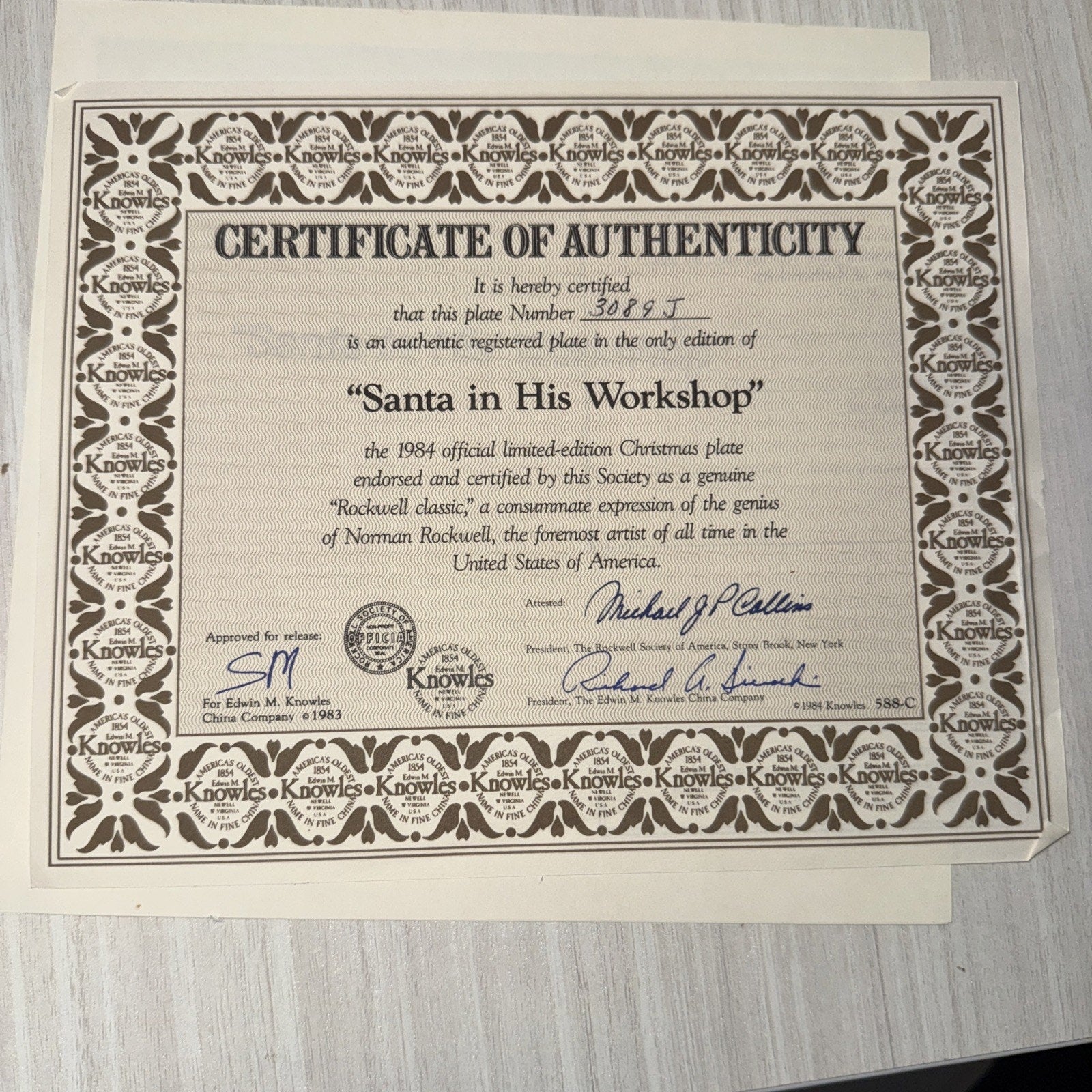 Norman Rockwell 1984 Santa Plate Knowles w/ Box & COA Christmas