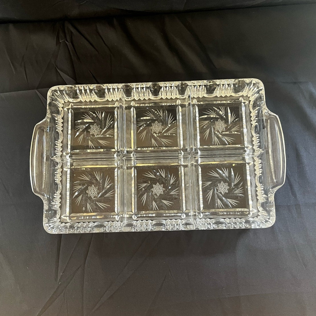 Unique Vintage Crystal Six Part Serving Platter w/ Handles