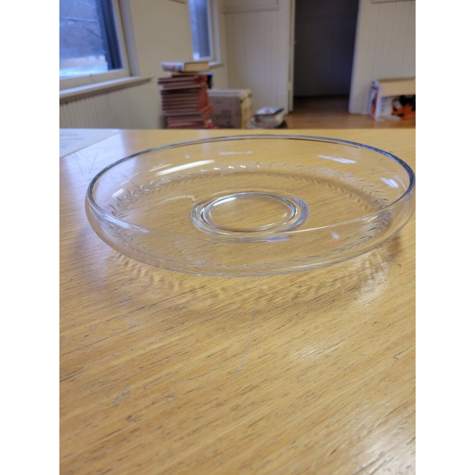 Measuring 12 inches in diameter and standing 2 1/8 inches tall, it serves as a versatile centerpiece or serving dish, adding a touch of timeless sophistication to any table setting or display.
