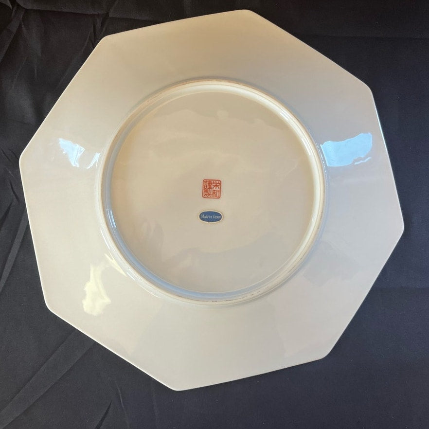 Vintage Japanese Porcelain Bird & Flowers Octagonal Plate by Eiwa Kinsei