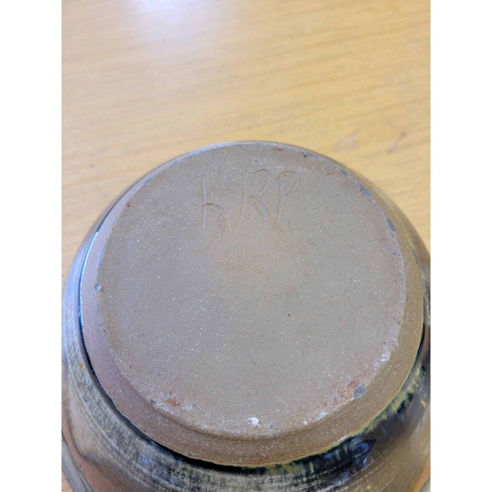 A generously sized stoneware salad bowl, perfect for serving large salads, pasta dishes, or deep dinner plates of food. It may potentially be an original Robinson Ransbottom bowl, suggested by the etched initials "RRP" on the bottom, though this is uncertain.