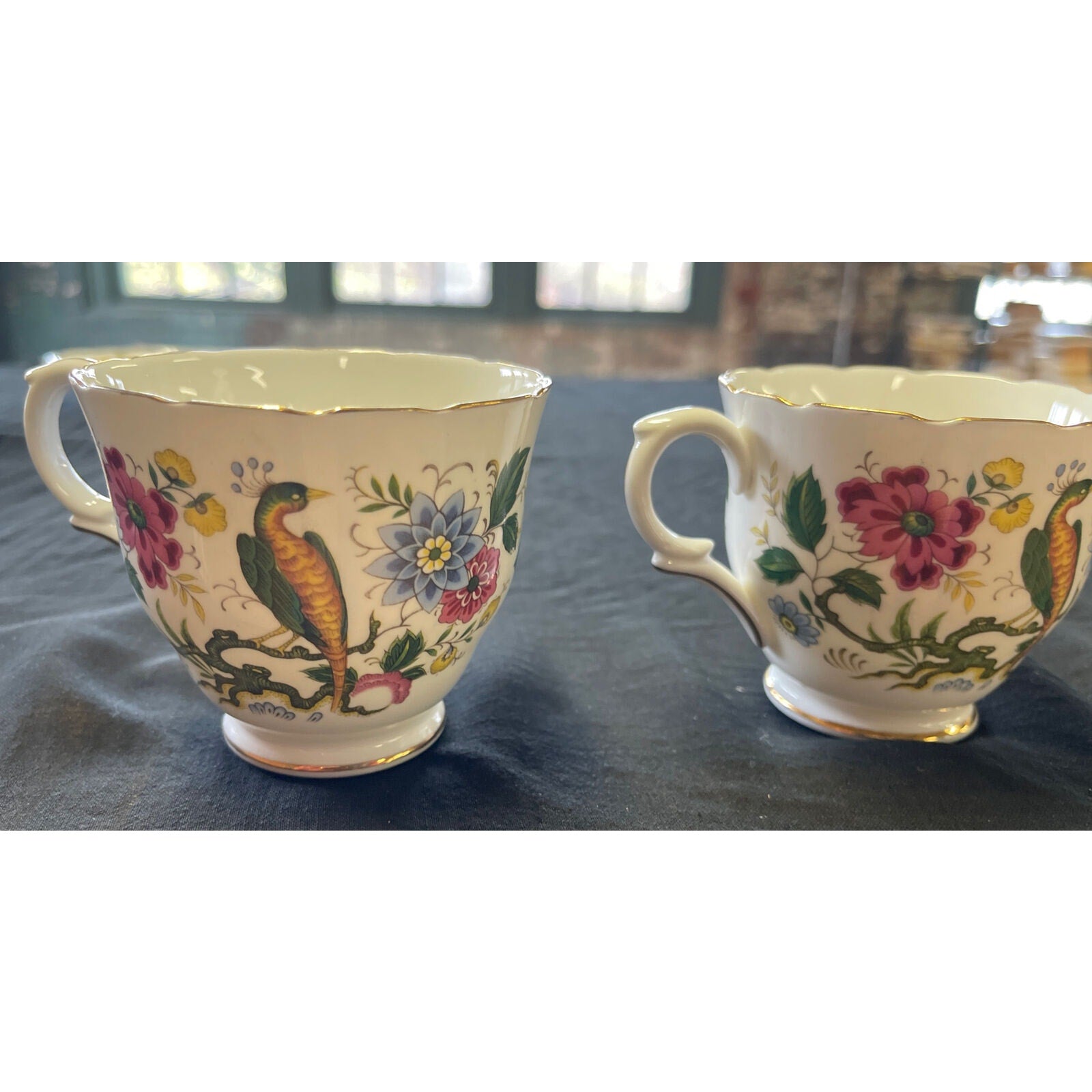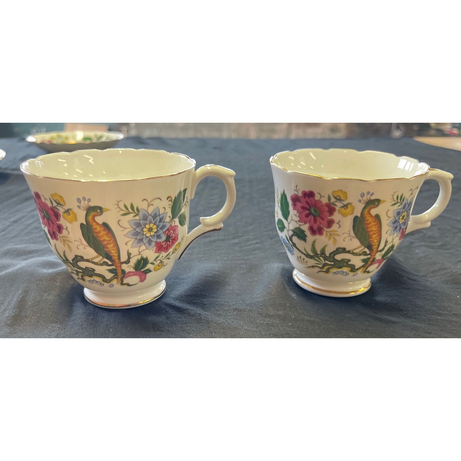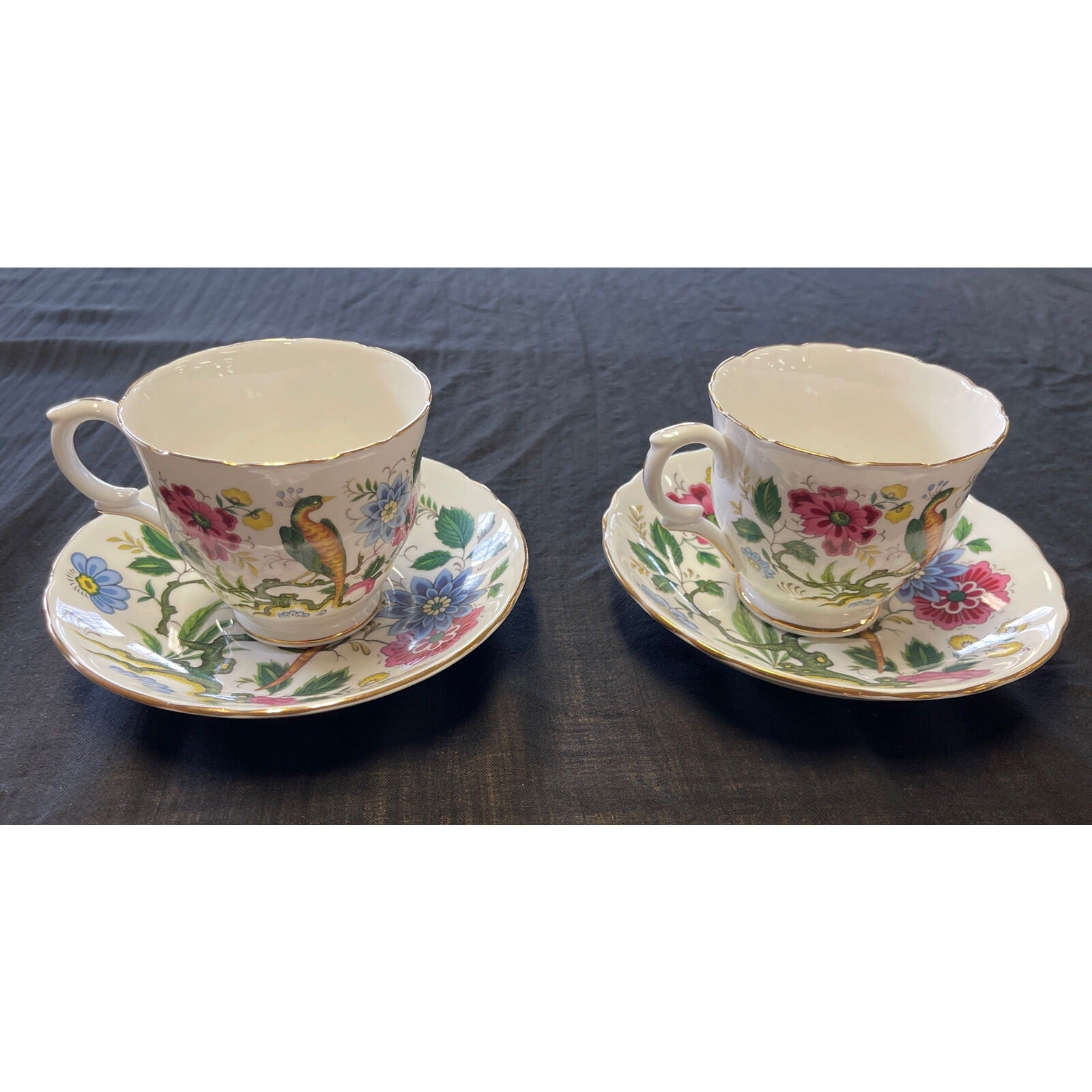 Vintage Set of 2 Crown Staffordshire Exotic Bird Coffee Cup and Saucer