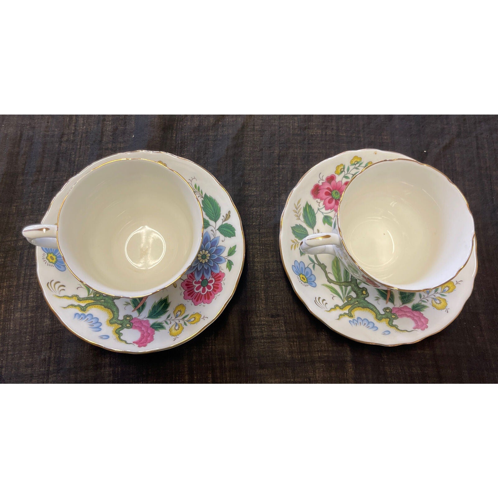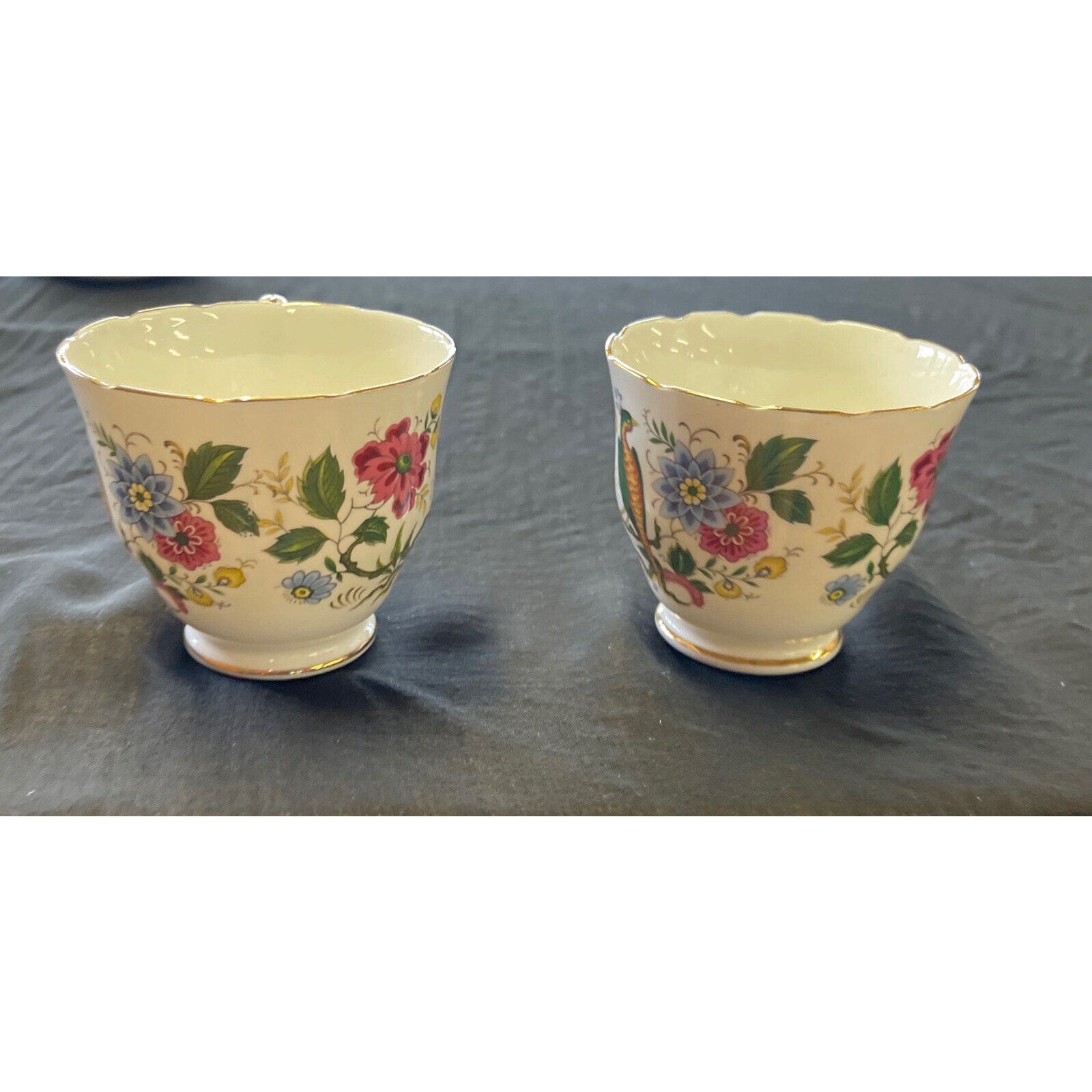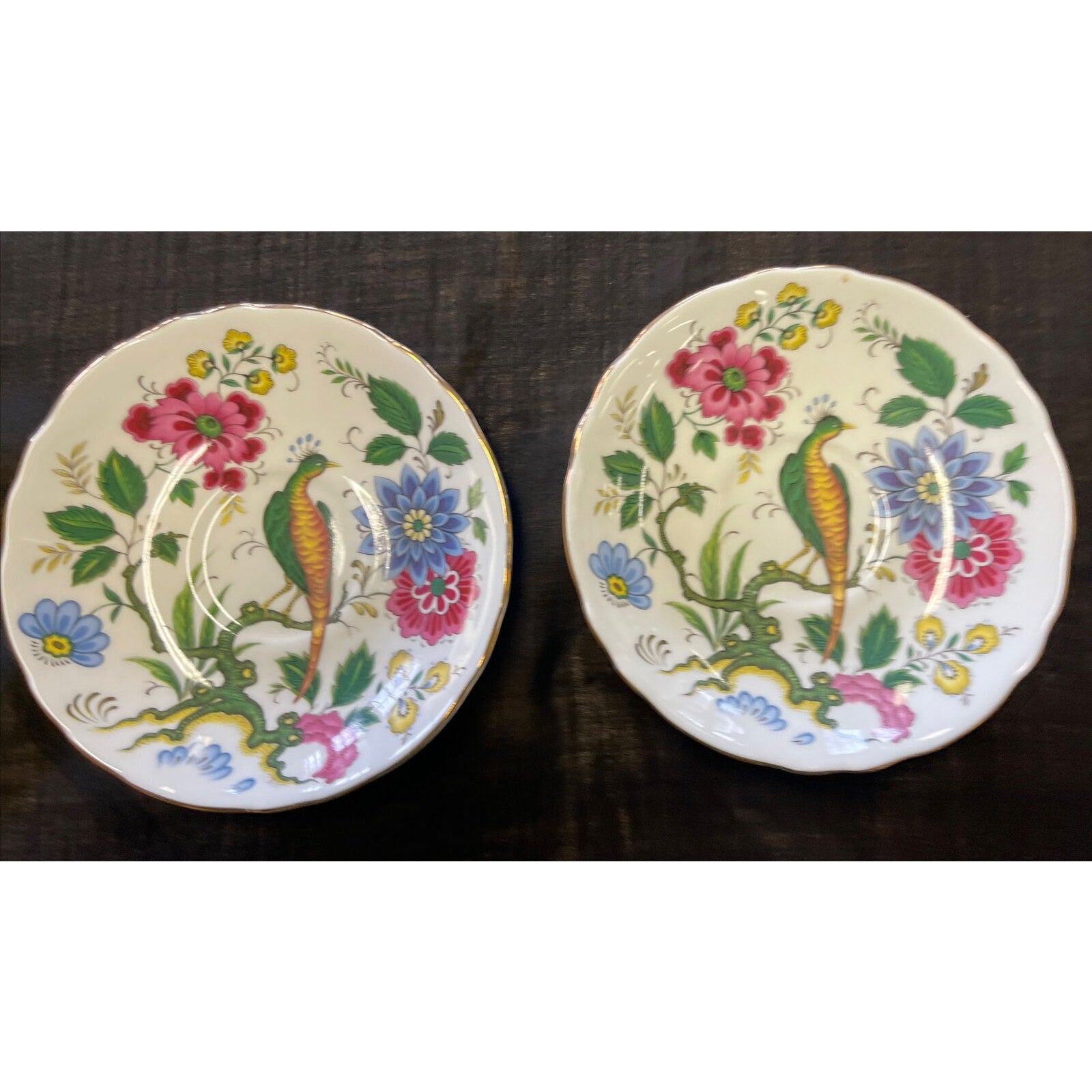 Vintage Set of 2 Crown Staffordshire Exotic Bird Coffee Cup and Saucer