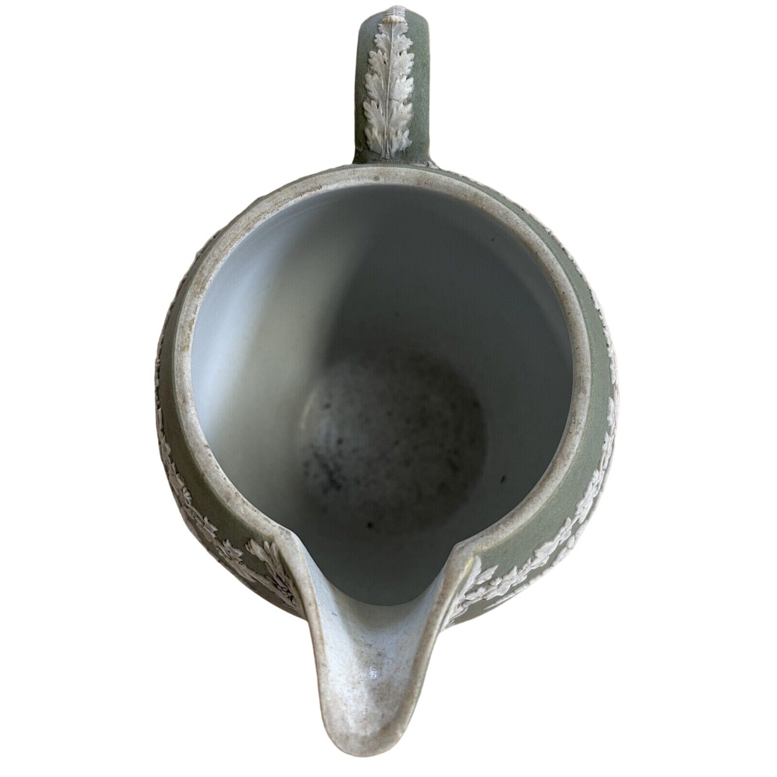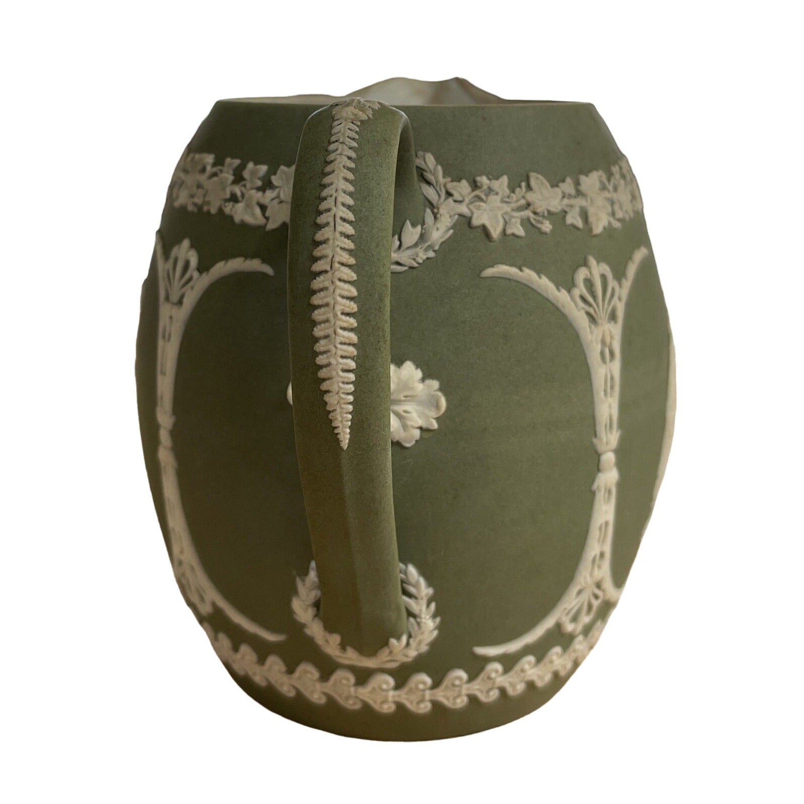 Vintage Wedgewood Neoclassical Dark Green Barrell Shaped Jasperwear Pitcher circa 1930